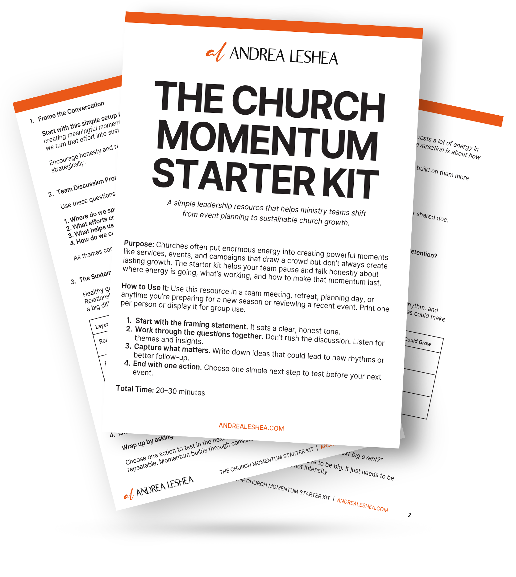 Most churches spend enormous energy on big Sundays and special events. Those moments create excitement, but they do not always create momentum. This starter kit helps your team pause, identify what’s working, and build rhythms that create sustainable church growth .
