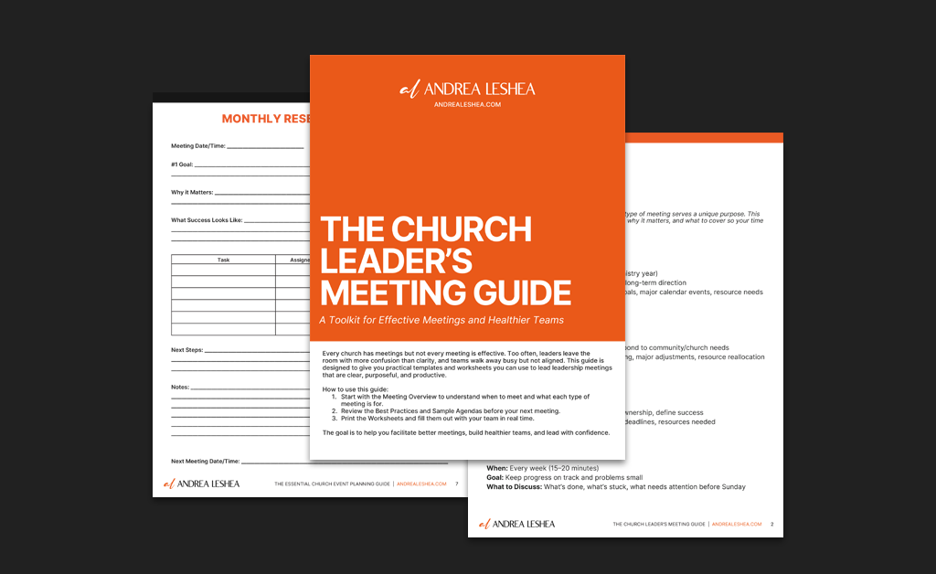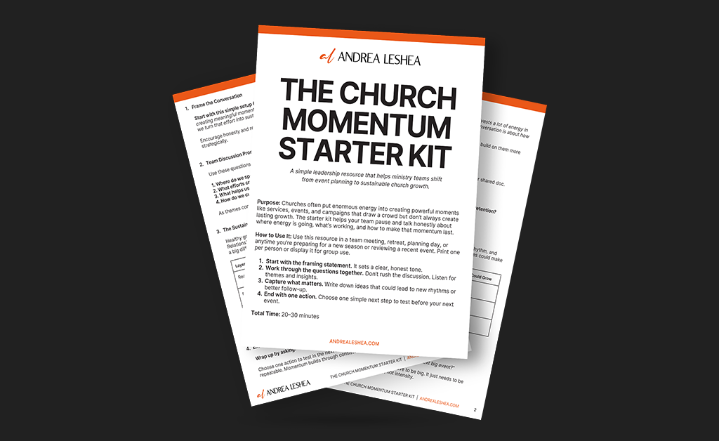 Resources The Church Momentum Starter KitDOWNLOAD The Church Leader’s Meeting GuideDOWNLOAD The Essential Church Event Planning GuideDOWNLOAD Church Health AssessmentDOWNLOAD