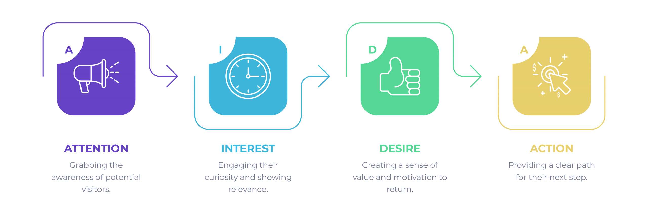A simple framework called the AIDA model (Attention, Interest, Desire, and Action) maps the path people follow when deciding whether to stay connected or walk away. Understanding these four steps can help you close the back door and keep more visitors engaged.